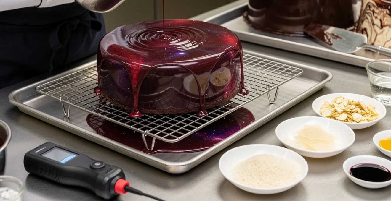 Une fois la formulation maîtrisée, la réussite du glaçage miroir dépend largement de sa mise en œuvre sur l’entremets glacé. La phase d’application est souvent celle qui fait la différence entre un dessert simplement correct et un dessert spectaculaire. Température de l’entremets, méthode de versage, gestion des bulles et recyclage du glaçage excédentaire : chaque détail compte. En adoptant quelques réflexes issus de la pratique professionnelle, vous pouvez sécuriser le résultat et gagner en régularité.