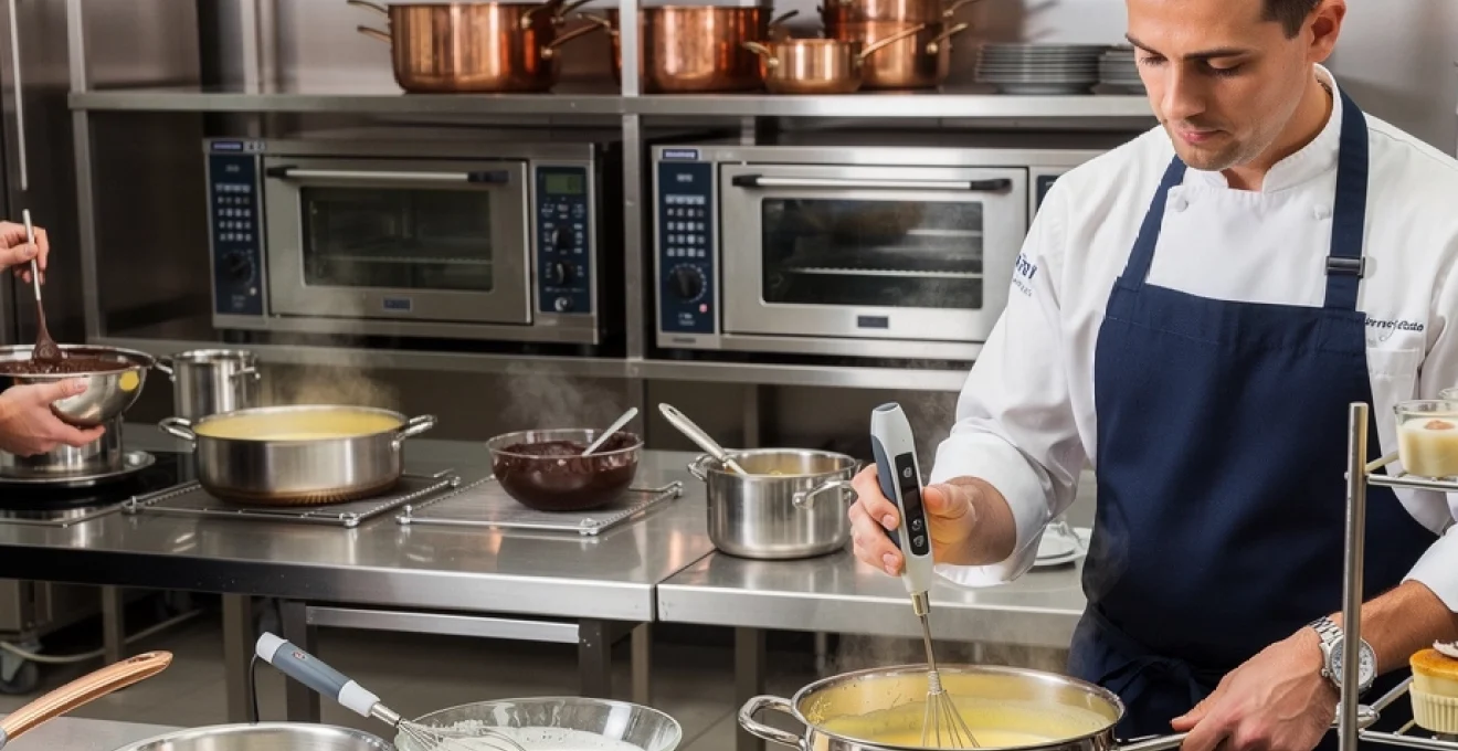 Un bain-marie parfaitement maîtrisé repose sur une mesure de température fiable. Les thermomètres digitaux de précision Testo, associés à des sondes à immersion, sont devenus un standard dans les laboratoires de pâtisserie et les cuisines d’hôtel. Leur temps de réponse rapide et leur précision au dixième de degré permettent de suivre en temps réel la température de l’eau, mais aussi celle de la préparation elle-même. Cette double mesure est essentielle pour comprendre le léger décalage thermique entre le milieu liquide et le cœur du produit.