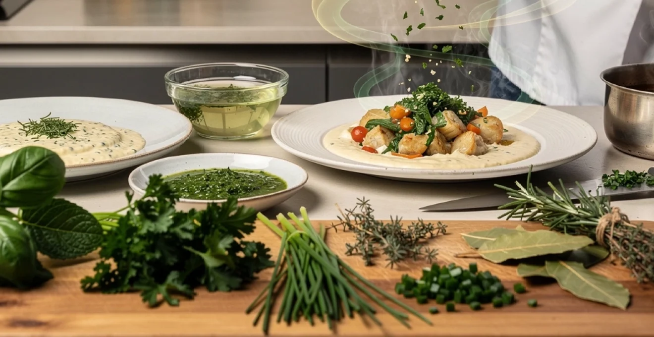 Profils aromatiques spécifiques des herbes classiques en gastronomie française